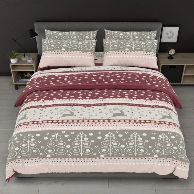 Новорічний комплект постільної білизни Новасон Сірі Олені сатин двоспальний 180х220 см наволочки 50х70 та 70х70