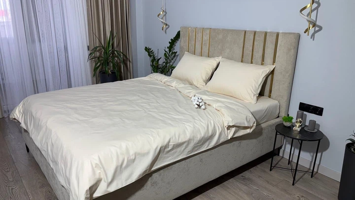 Комплект постільноі білизни MG&Lviv Євро 200*220 сатин бежевий 0110