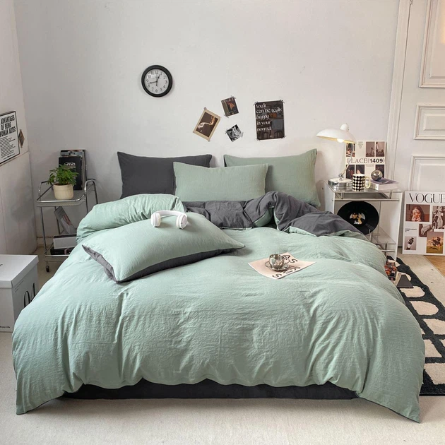 Постільна білизна Зелений з Графіт, сатин Двухспальний розмір, наволочки 50/70