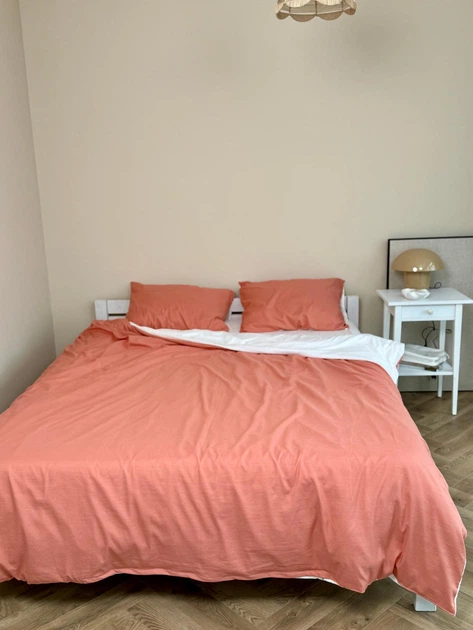 Постільна білизна Теракот з Молочним, сатин Двухспальний розмір, наволочки 50/70