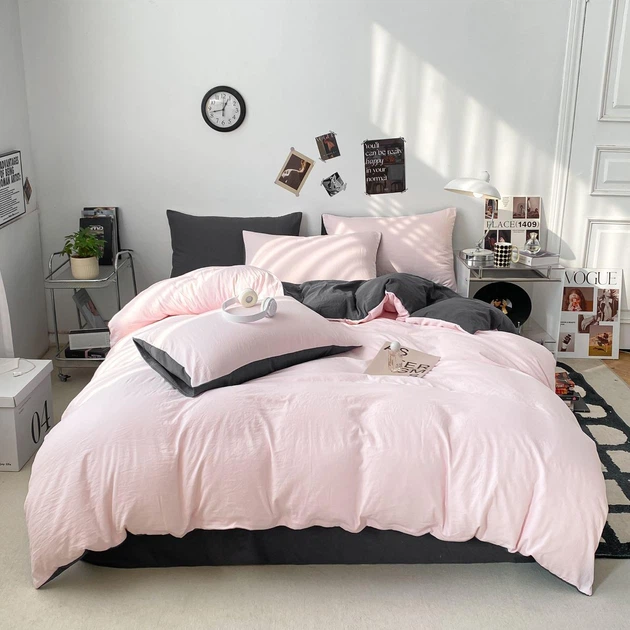 Постільна білизна Рожевий з Графіт, сатин Двухспальний розмір, наволочки 70/70
