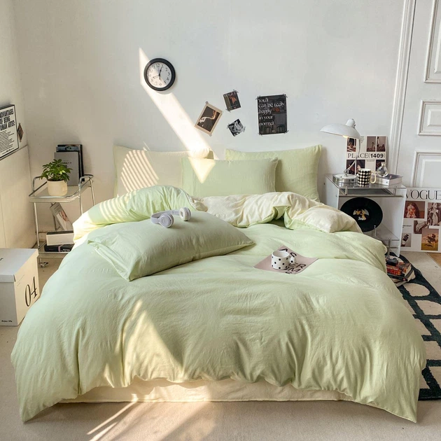 Постільна білизна Молочний з Салатовим, сатин Двухспальний розмір, наволочки 70/70