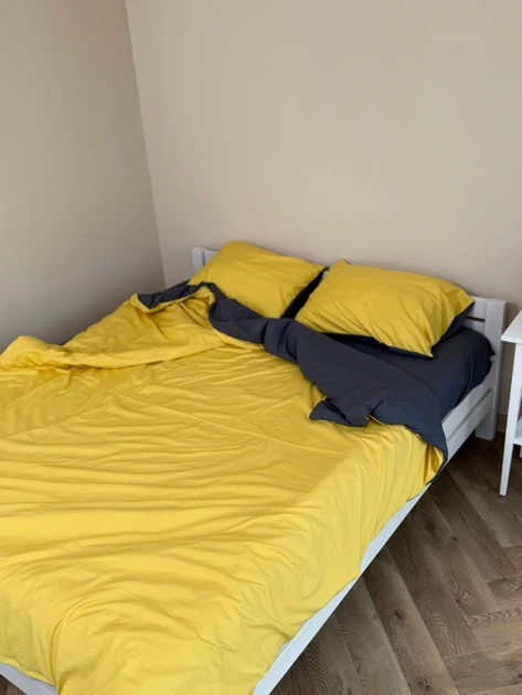 Постільна білизна Жовтий з Графіт, сатин Двухспальний розмір, наволочки 50/70