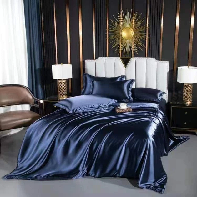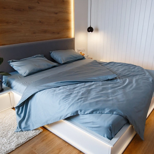 Комплект атласної постільної білизни Двоспальний 180х210 наволочка 2х70х70 Синій (Д-П4К01-02)
