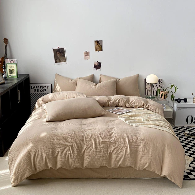 Постільна білизна Бежевий, сатин Двухспальний розмір, наволочки 50/70
