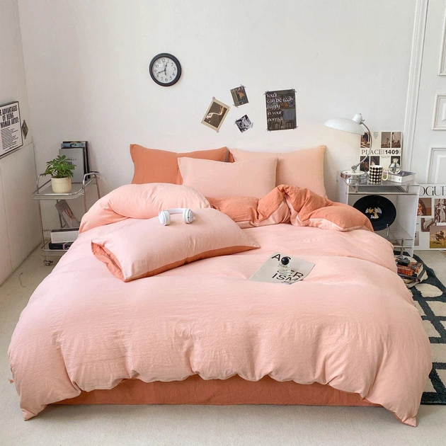 Постільна білизна Персик з Рожевим, сатин Двухспальний розмір, наволочки 50/70