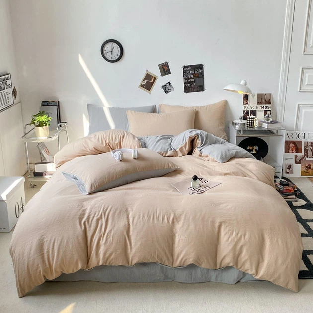 Постільна білизна Бежевий з Сірим, сатин Двухспальний розмір, наволочки 70/70