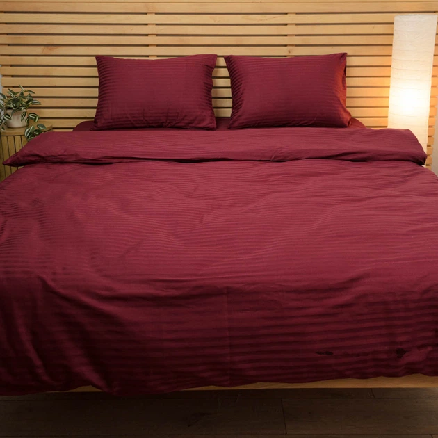 Постільна білизна Страйп Сатин Полуторна 125 г/м2 YouStar (Бордовий) 2 х 70х70