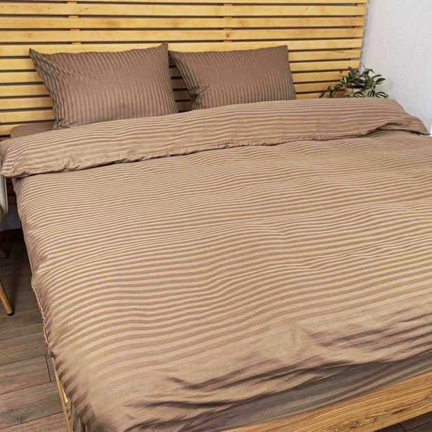 Постільна білизна Страйп Сатин Полуторна 125 г/м2 YouStar (Коричневий) 2 х 50х70