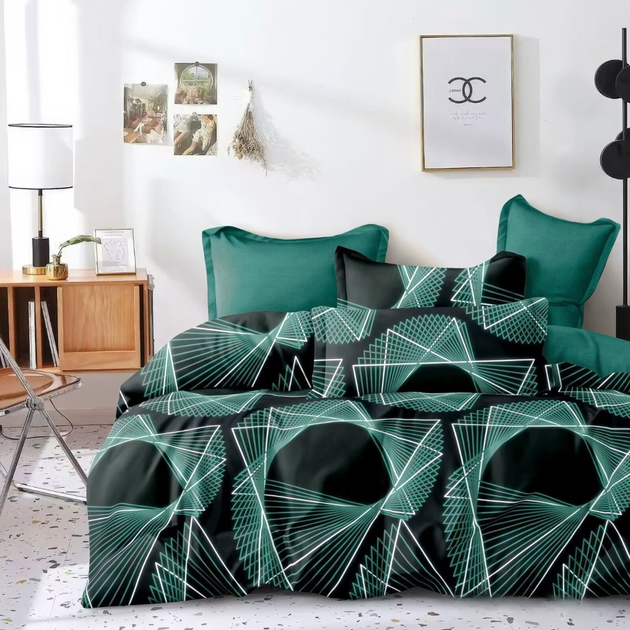 Постільна білизна двоспальна євро чорна з зеленим Абстракція Сатин Ananasko 4498941