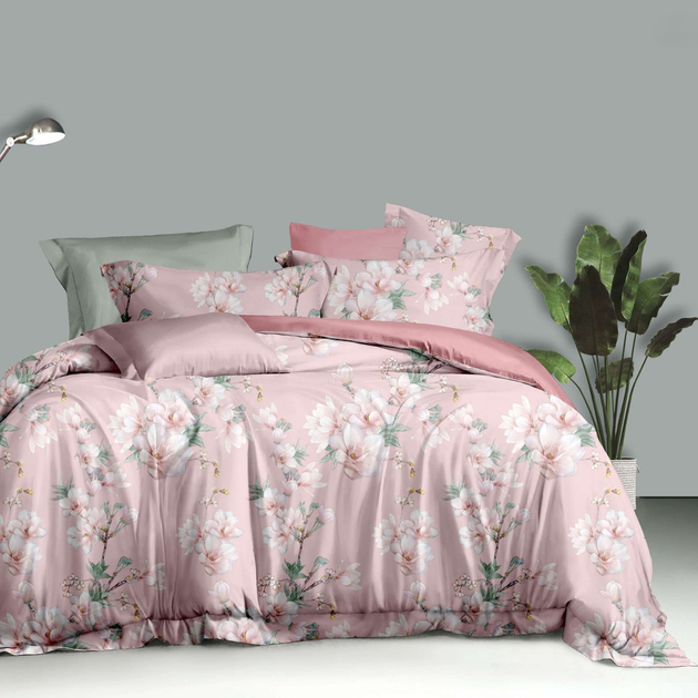 Постільна білизна двоспальна євро рожева Квіти Сатин Ananasko 44369