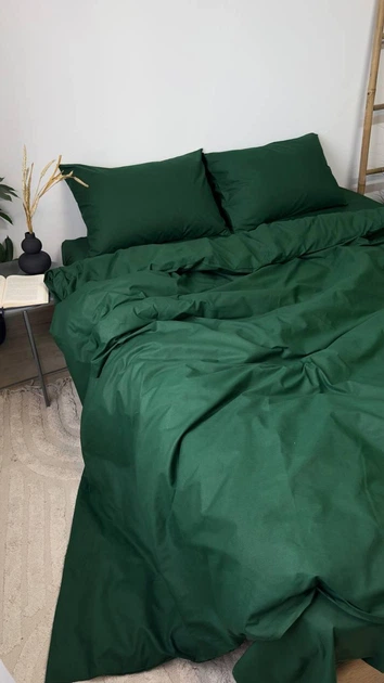 Постільна білизна з гумкою однотонна Смарагдова, двоспальний розмір 180х215 см, бязь, наволочки 70х70, бавовна
