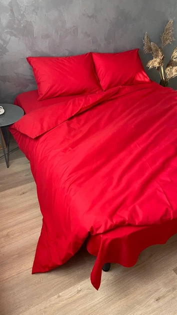 Постільна білизна з гумкою однотонна Червоний двоспальний розмір 180х215 см, бязь, наволочки 70х70, 100 бавовна