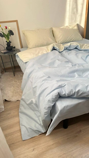 Постільна білизна з гумкою однотонна Шампань + світло-блакитний, двоспальний розмір 180х215 см, бязь наволочки 70х70, бавовн