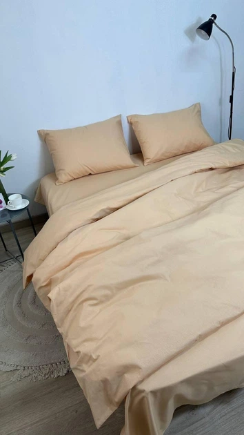 Постільна білизна з гумкою однотонна Пісочний, двоспальний розмір 180х215 см, бязь наволочки 70х70, бавовна