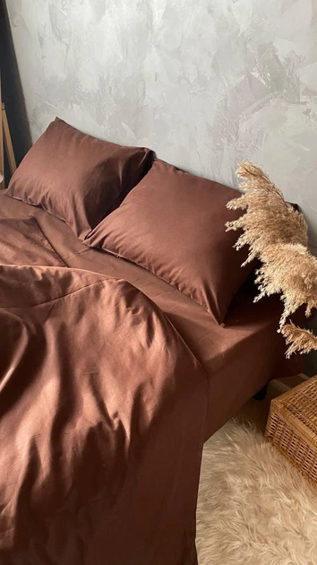 Постільна білизна з гумкою однотонна Шоколад двоспальний розмір 180х215 см, бязь, наволочки 50х70, 100 бавовна