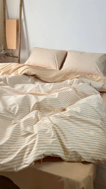 Постільна білизна з гумкою Пісочна смужка, двоспальний розмір 180х215 см, бязь наволочки 70х70, бавовна