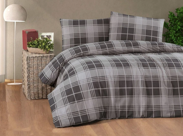 Двоспальний Євро комплект Cotton Collection Kare Cizgi Grey Фланель