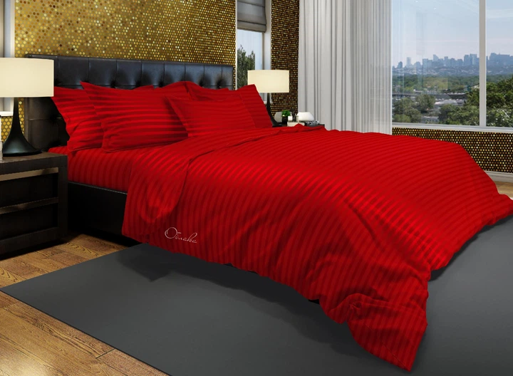 Комплект stripesatinredAt Home постільної білизни Страйп-сатин Двоспальний 200 * 220 Підковдра на Блискавці на Ширину Підков