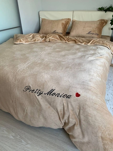 Велюрова постільна білизна Моніка Двоспальний розмір Бежевий