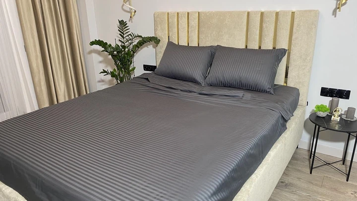 Комплект постільноі білизни MG&Lviv Євро 200*220 Страйп-сатин сірий графіт