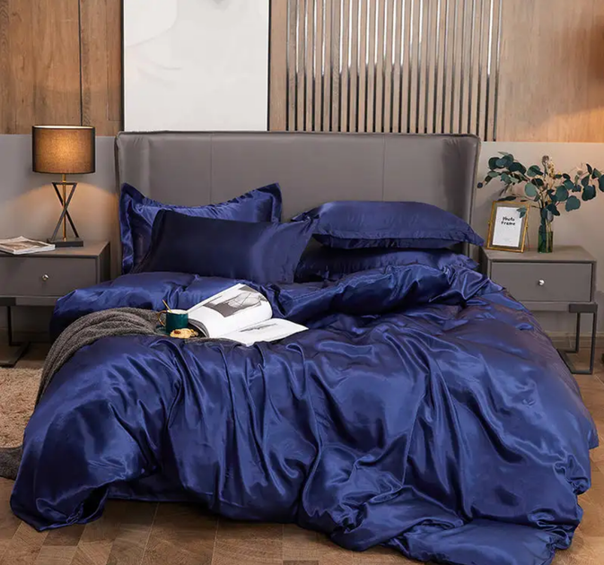Атласна постільна білизна Євро 200 x 220 наволочка 70х70 2шт Темно-синій (14140202)