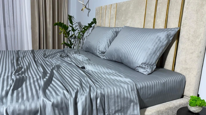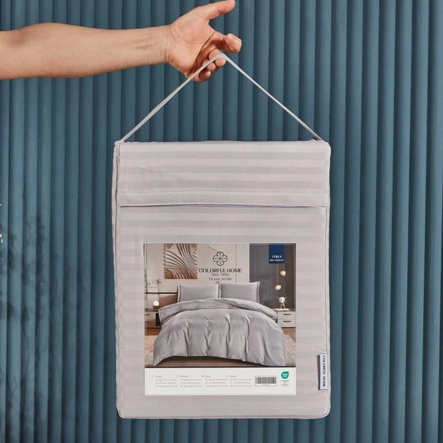 Комплект постільної білизни із страйп-сатину Colorful Home (євро розмір, світло-сірий)