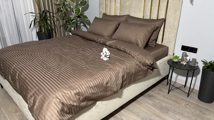 Комплект постільноі білизни MG&Lviv Євро 200*220 Страйп-сатин капучино 041