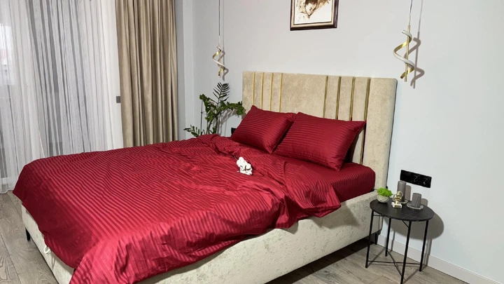 Комплект постільноі білизни MG&Lviv Євро 200*220 Страйп-сатин червоний