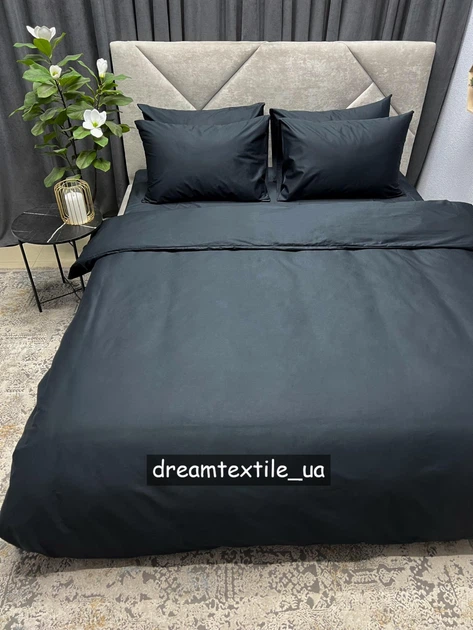 Постільна білизна бавовняна Двоспальна 9901S 180 x 220 Сатин 50 x 70 Чорна