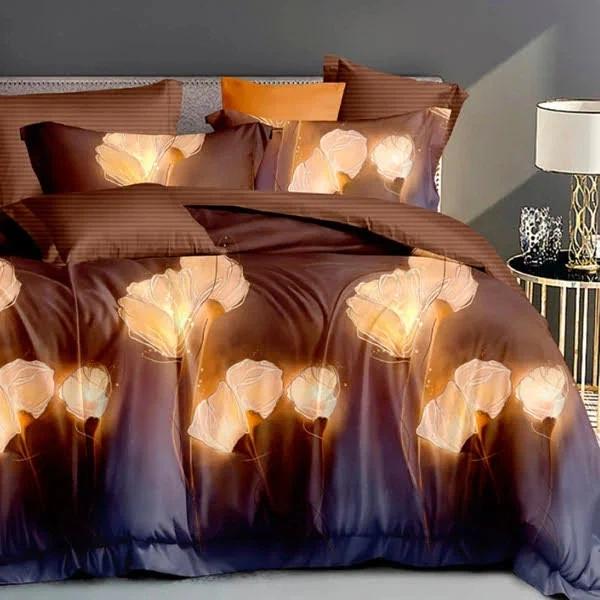 Постільна білизна бавовняна Двоспальна 9927S 180 x 220 Сатин 70 x 70 Коричнева