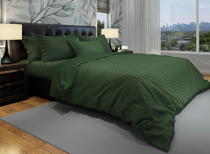 Комплект Dreams At Home постельного белья Страйп-сатин Полуторный 70stripesatingreen Простирадло на Резинці 100*200*25 та Пі