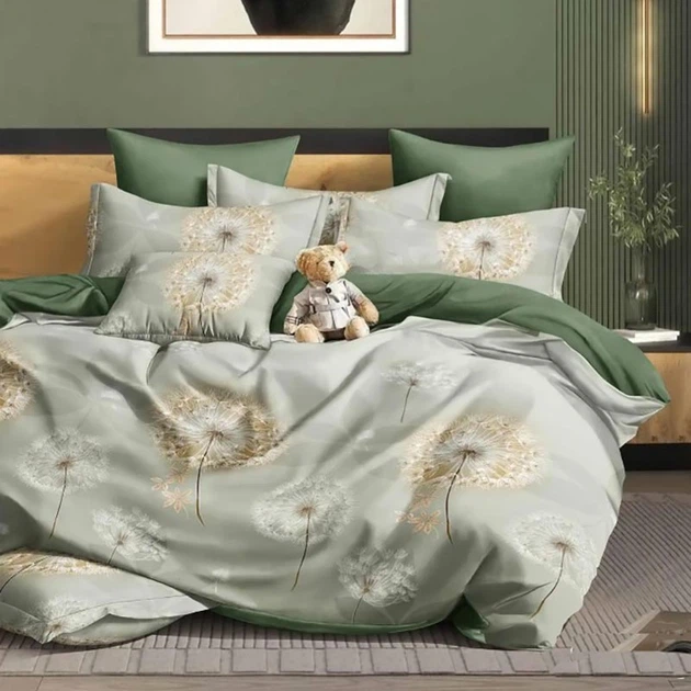 Постільна Білизна Двоспальна Зелена Сатин Флора Пакистан Євро (358973)