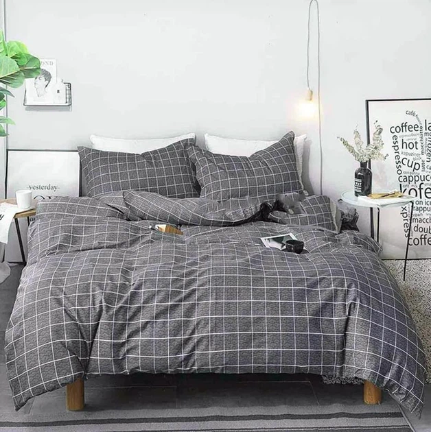 Постільна Білизна Сіра Клітинка Сатин Євро (357357)