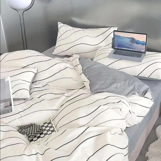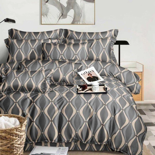 Постільна Білизна Сіра Сатин Абстракція Наволочки Простирадло Підковдра Комплект Євро (371772)