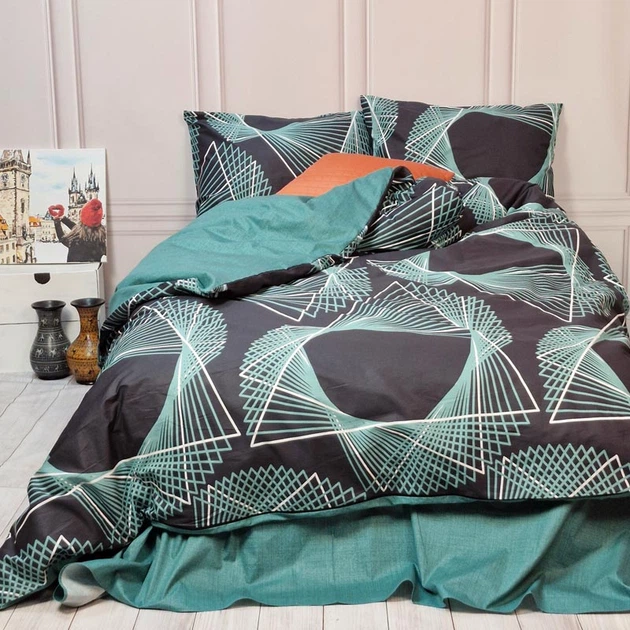 Постільна Білизна Двоспальна Абстракція Сатин Зелена Євро (358975)