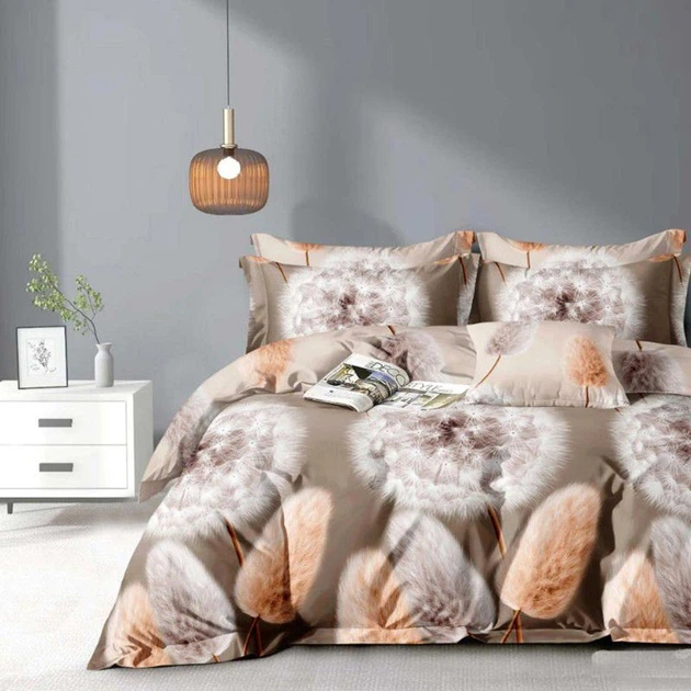 Постільна Білизна Двоспальна 200x220 См Сатин Принт Флора Бежевий Пакистан Євро (357541)