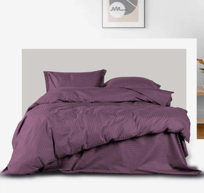 Комплект постільної білизни MERISET 120089886 Двоспальний на резинці Сатин страйп Сливовий
