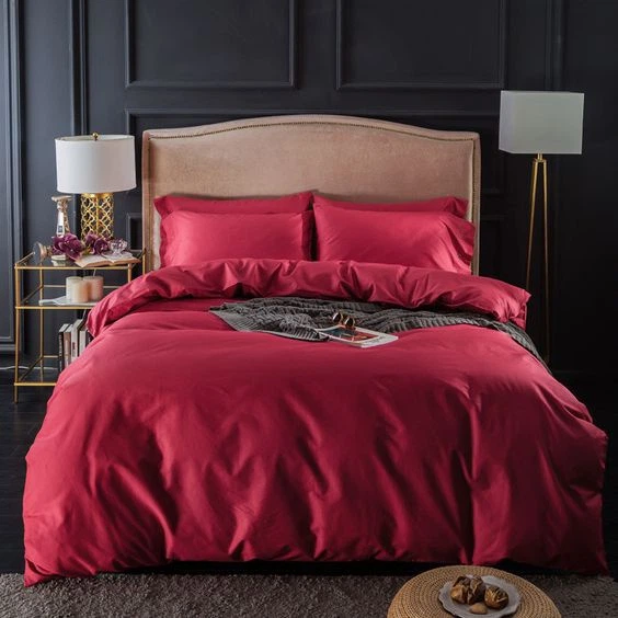 Комплект постільної білизни MERISET 120090158 Двоспальний на резинці Сатин однотон Бордове