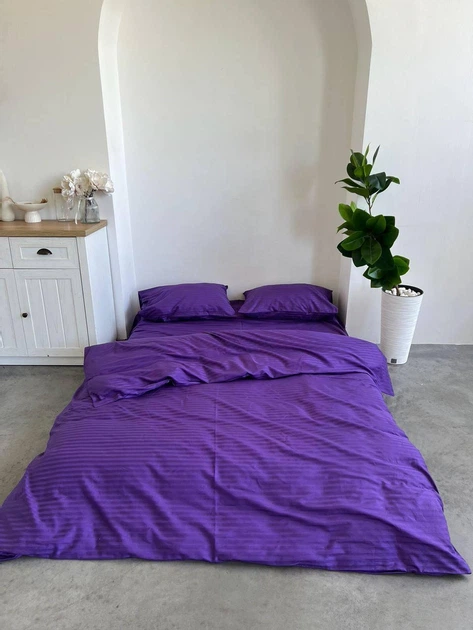 Постільна білизна Страйп-сатин сімейна 150х210 (2 шт) простирадло на гумці 180х200х20 наволочки 70х70 темний бузок