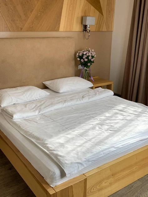 Постільна білизна Страйп-сатин сімейна 150х210 (2 шт) простирадло на гумці 180х200х20 наволочки 50х70 білий
