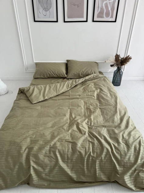 Постільна білизна Страйп-сатин сімейна 150х210 (2 шт) простирадло на гумці 180х200х20 наволочки 70х70 оливка