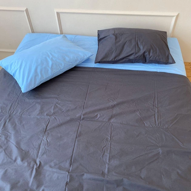 Постільна білизна Голубий + графіт, ранфорс Полуторний розмір, наволочки 50/70