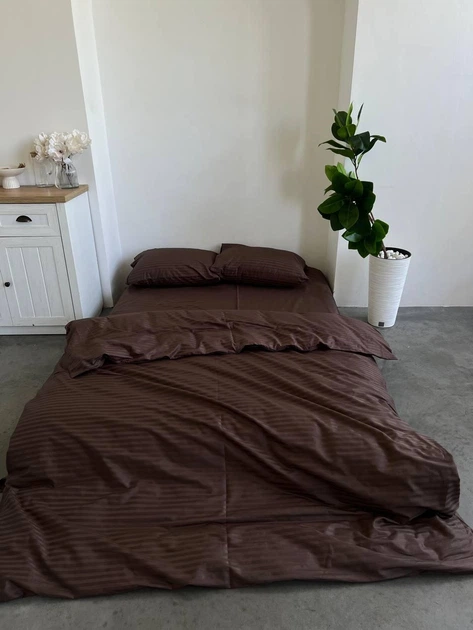 Постільна білизна Страйп-сатин сімейна 150х210 (2 шт) простирадло на гумці 180х200х20 наволочки 50х70 шоколад