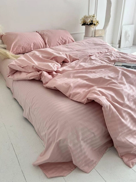 Постільна білизна Страйп-сатин сімейна 150х210 (2 шт) простирадло на гумці 180х200х20 наволочки 70х70 пильна троянда