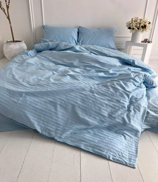 Постільна білизна Страйп-сатин сімейна 150х210 (2 шт) простирадло на гумці 180х200х20 наволочки 50х70 блакитний