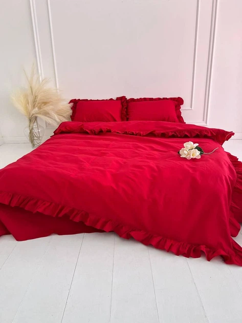 Постільна білизна Червоний з рюшами, сімейний розмір 145х215см х2шт, бязь наволочки 50х70, бавовна