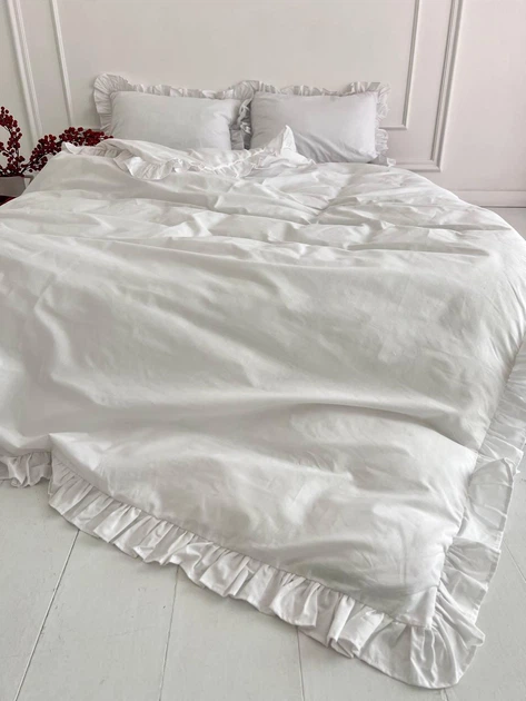 Постільна білизна Біла з рюшами, сімейний розмір 145х215см х2шт, бязь наволочки 70х70, бавовна