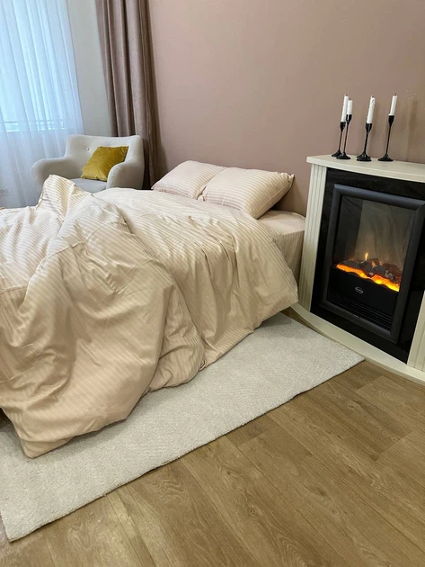Комплект постільної білизни Страйп Сатин Premium айворі півтороспальний 150х210 см