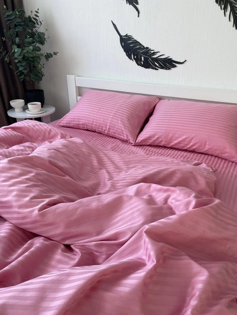 Комплект постільної білизни Страйп Сатин Premium рожевий півтороспальний 150х210 см